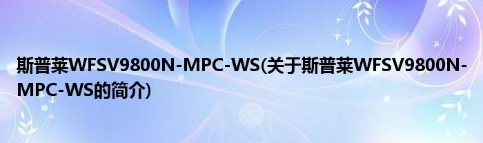 斯普莱WFSV9800N-MPC-WS(关于斯普莱WFSV9800N-MPC-WS的简介)