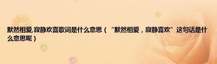 大家好,小常来为大家解答以上问题。默然相爱,寂静欢喜歌词是什么意思,“默然相爱,寂静喜欢”这句话是什么意思呢很多人还不知道,现在让我们一起来看看吧!