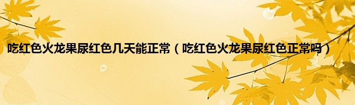大家好,小科来为大家解答以上问题。吃红色火龙果尿红色几天能正常,吃红色火龙果尿红色正常吗很多人还不知道,现在让我们一起来看看吧!