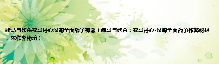 大家好,小常来为大家解答以上问题。骑马与砍杀戎马丹心汉匈全面战争神器,骑马与砍杀:戎马丹心-汉匈全面战争作弊秘籍,求作弊秘籍很多人还不知道,现在让我们一起来看看吧!