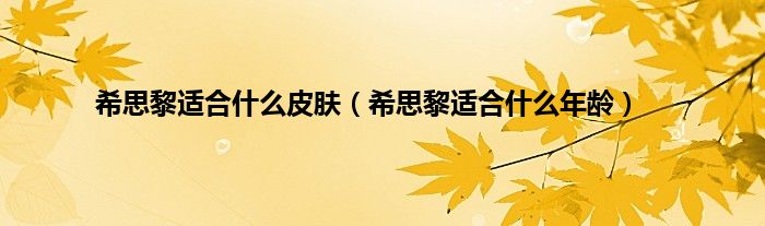 大家好,小科来为大家解答以上问题。希思黎适合什么皮肤,希思黎适合什么年龄很多人还不知道,现在让我们一起来看看吧!