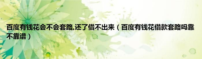 大家好,小常来为大家解答以上问题。百度有钱花会不会套路,还了借不出来,百度有钱花借款套路吗靠不靠谱很多人还不知道,现在让我们一起来看看吧!