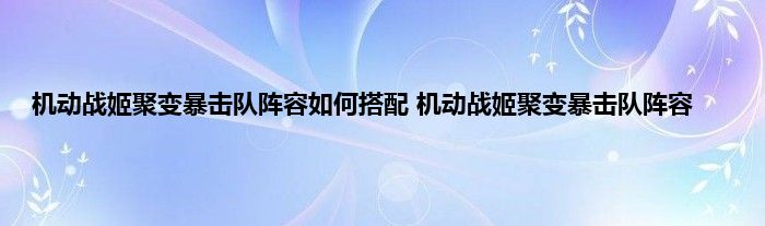 机动战姬聚变暴击队阵容如何搭配?机动战姬聚变游戏已经开服,目前游戏平民玩家还是很多都没办法组出很多高星角色的队伍。想要推图还是只能使用低星队,目前最强平民阵容是暴击队,下面就带来了具体的阵容推举,希翼大家喜欢。