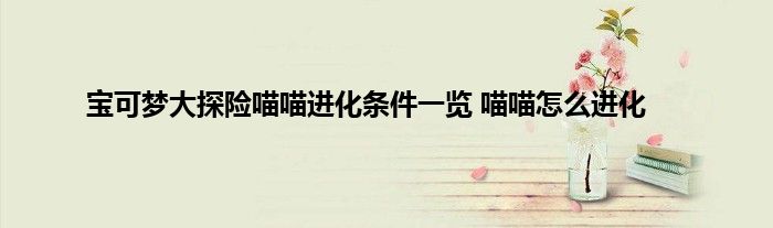 以上就是宝可梦大探险喵喵怎么进化的全部内容,希翼对大家有所帮助。