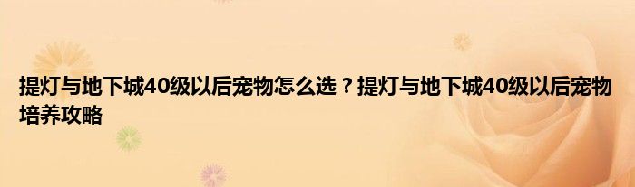 提灯与地下城游戏近期大火,其中宠物契约兽系统也是其亮点之一,提灯与地下城40级以后宠物怎么选?微氪40级之后宠物怎么培养?都了40级之后宠物的选择就要核心一点,这样你的资源使用才不能够浪费,现在就一起来看看详细推荐吧~