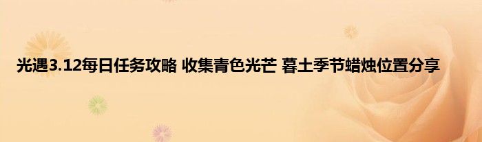 光遇每天都有日常任务需要玩家完成,完成后可以获得大量奖励,今天是3月12日,今天的任务分别需要玩家接受朋友礼物、收集青色光芒、找蜡烛、面对冥龙,很多玩家不知道在哪里收集青色光芒以及季节蜡烛的位置,下面就跟着小编一起看看吧。