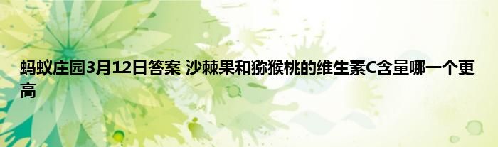蚂蚁庄园今日答案是什么?蚂蚁庄园每天都会问玩家一些问题,答对了的话就能领取饲料给小鸡喂食。3月12日的最新问题公布,这次的问题是:一般来说,沙棘果和猕猴桃的维生素C含量,哪一个更高?以下是详细答案,一起来看看吧。