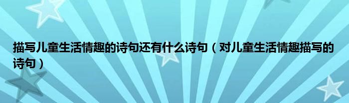 大家好,小科来为大家解答以上问题。描写儿童生活情趣的诗句还有什么诗句,对儿童生活情趣描写的诗句很多人还不知道,现在让我们一起来看看吧!