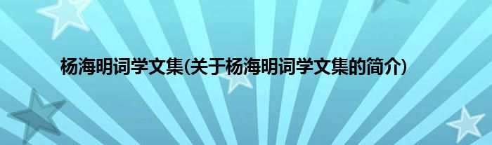 本文关于杨海明词学文集的简介就讲解完毕,希望对大家有所帮助。