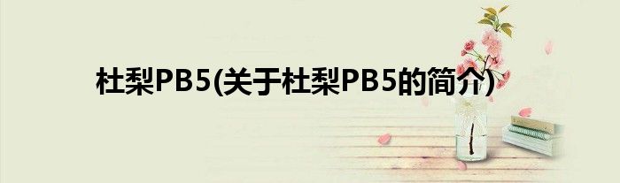 本文关于杜梨PB5的简介就讲解完毕,希望对大家有所帮助。