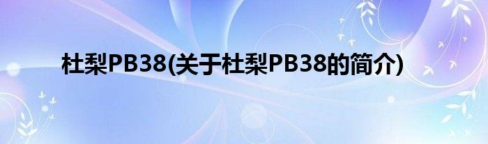 本文关于杜梨PB38的简介就讲解完毕,希望对大家有所帮助。