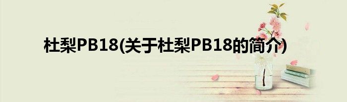 大家好,杜梨PB18,关于杜梨PB18的简介很多人还不知道,现在让我们一起来看看吧!