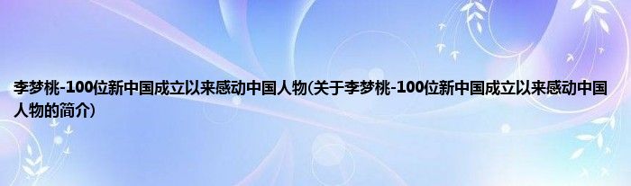本文关于李梦桃-100位新中国成立以来感动中国人物的简介就讲解完毕,希望对大家有所帮助。