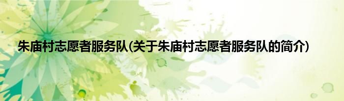 朱庙村志愿者服务队(关于朱庙村志愿者服务队的简介)