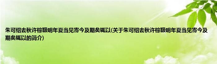 本文关于朱可绍去秋许棕靸明年夏当见寄今及期矣辄以的简介就讲解完毕,希望对大家有所帮助。