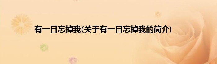 大家好,有一日忘掉我,关于有一日忘掉我的简介很多人还不知道,现在让我们一起来看看吧!