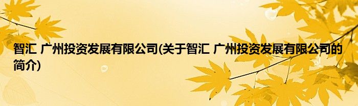 本文关于智汇 广州投资发展有限公司的简介就讲解完毕,希望对大家有所帮助。