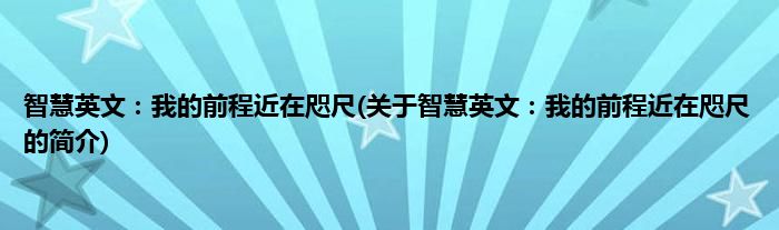 大家好,智慧英文:我的前程近在咫尺,关于智慧英文:我的前程近在咫尺的简介很多人还不知道,现在让我们一起来看看吧!