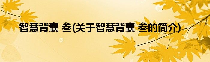 本文关于智慧背囊 叁的简介就讲解完毕,希望对大家有所帮助。