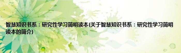 本文关于智慧知识书系:研究性学习简明读本的简介就讲解完毕,希望对大家有所帮助。