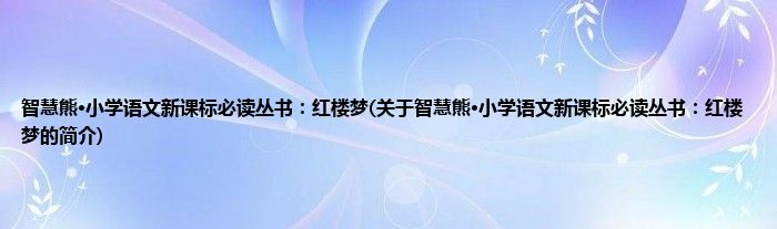 本文关于智慧熊·小学语文新课标必读丛书:红楼梦的简介就讲解完毕,希望对大家有所帮助。
