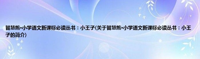 本文关于智慧熊·小学语文新课标必读丛书:小王子的简介就讲解完毕,希望对大家有所帮助。