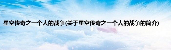 本文关于星空传奇之一个人的战争的简介就讲解完毕,希望对大家有所帮助。