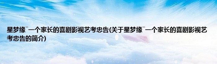 本文关于星梦缘―一个家长的喜剧影视艺考忠告的简介就讲解完毕,希望对大家有所帮助。