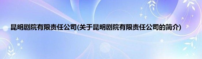 本文关于昆明剧院有限责任公司的简介就讲解完毕,希望对大家有所帮助。