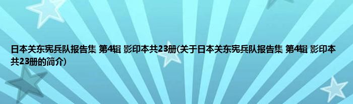 本文关于日本关东宪兵队报告集 第4辑 影印本共23册的简介就讲解完毕,希望对大家有所帮助。