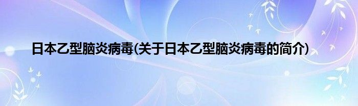 本文关于日本乙型脑炎病毒的简介就讲解完毕,希望对大家有所帮助。