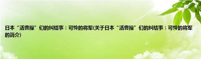 本文关于日本“活曹操”们的纠结事:可怜的将军的简介就讲解完毕,希望对大家有所帮助。