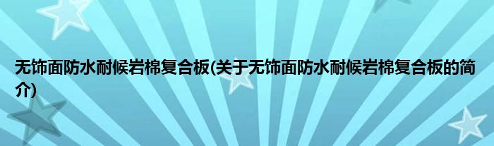 本文关于无饰面防水耐候岩棉复合板的简介就讲解完毕,希望对大家有所帮助。