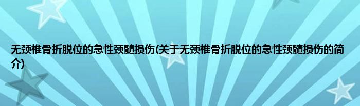 本文关于无颈椎骨折脱位的急性颈髓损伤的简介就讲解完毕,希望对大家有所帮助。