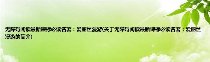 本文关于无障碍阅读最新课标必读名著:爱丽丝漫游的简介就讲解完毕,希望对大家有所帮助。