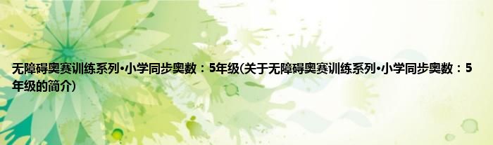 大家好,无障碍奥赛训练系列·小学同步奥数:5年级,关于无障碍奥赛训练系列·小学同步奥数:5年级的简介很多人还不知道,现在让我们一起来看看吧!