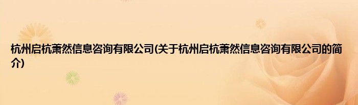 本文关于杭州启杭萧然信息咨询有限公司的简介就讲解完毕,希望对大家有所帮助。