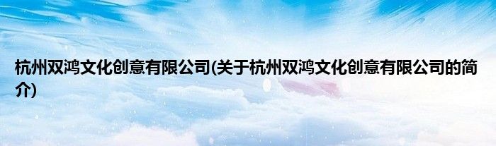 本文关于杭州双鸿文化创意有限公司的简介就讲解完毕,希望对大家有所帮助。