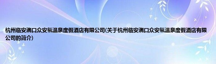 本文关于杭州临安湍口众安氡温泉度假酒店有限公司的简介就讲解完毕,希望对大家有所帮助。