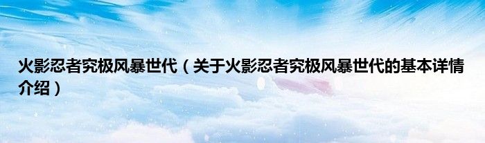 火影忍者究极风暴世代(关于火影忍者究极风暴世代的基本详情介绍)