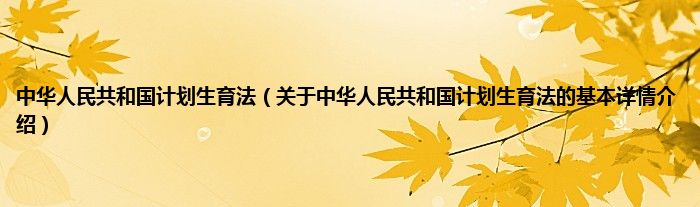 本文关于中华人民共和国计划生育法的基本详情介绍就讲解完毕,希望对大家有所帮助。