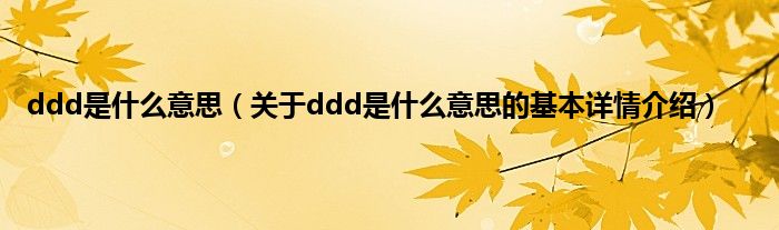 大家好我是小蝌蚪,ddd是什么意思,关于ddd是什么意思的基本详情介绍很多人还不知道,那么现在让我们一起来看看吧!