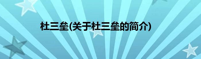本文关于杜三垒的简介就讲解完毕,希望对大家有所帮助。