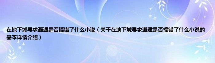 大家好我是小蝌蚪,在地下城寻求邂逅是否搞错了什么小说,关于在地下城寻求邂逅是否搞错了什么小说的基本详情介绍很多人还不知道,那么现在让我们一起来看看吧!