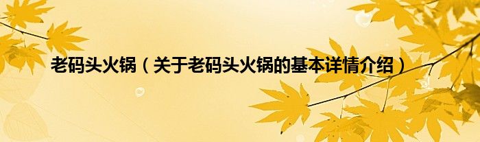 本文关于老码头火锅的基本详情介绍就讲解完毕,希望对大家有所帮助。