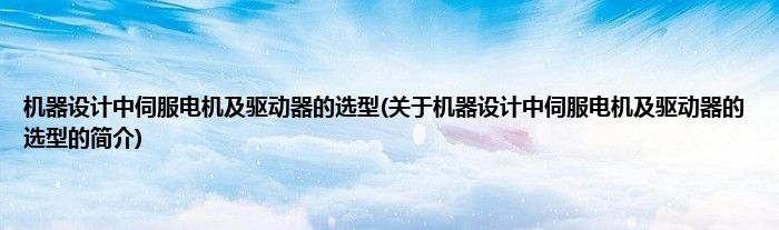 本文关于机器设计中伺服电机及驱动器的选型的简介就讲解完毕,希望对大家有所帮助。