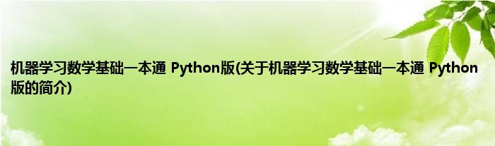本文关于机器学习数学基础一本通 Python版的简介就讲解完毕,希望对大家有所帮助。