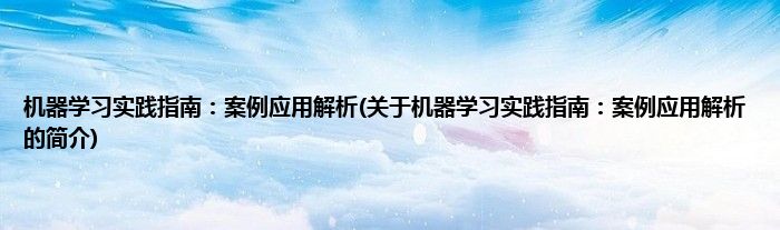 大家好,机器学习实践指南:案例应用解析,关于机器学习实践指南:案例应用解析的简介很多人还不知道,现在让我们一起来看看吧!