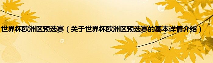 本文关于世界杯欧洲区预选赛的基本详情介绍就讲解完毕,希望对大家有所帮助。