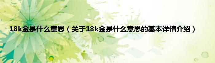 本文关于18k金是什么意思的基本详情介绍就讲解完毕,希望对大家有所帮助。